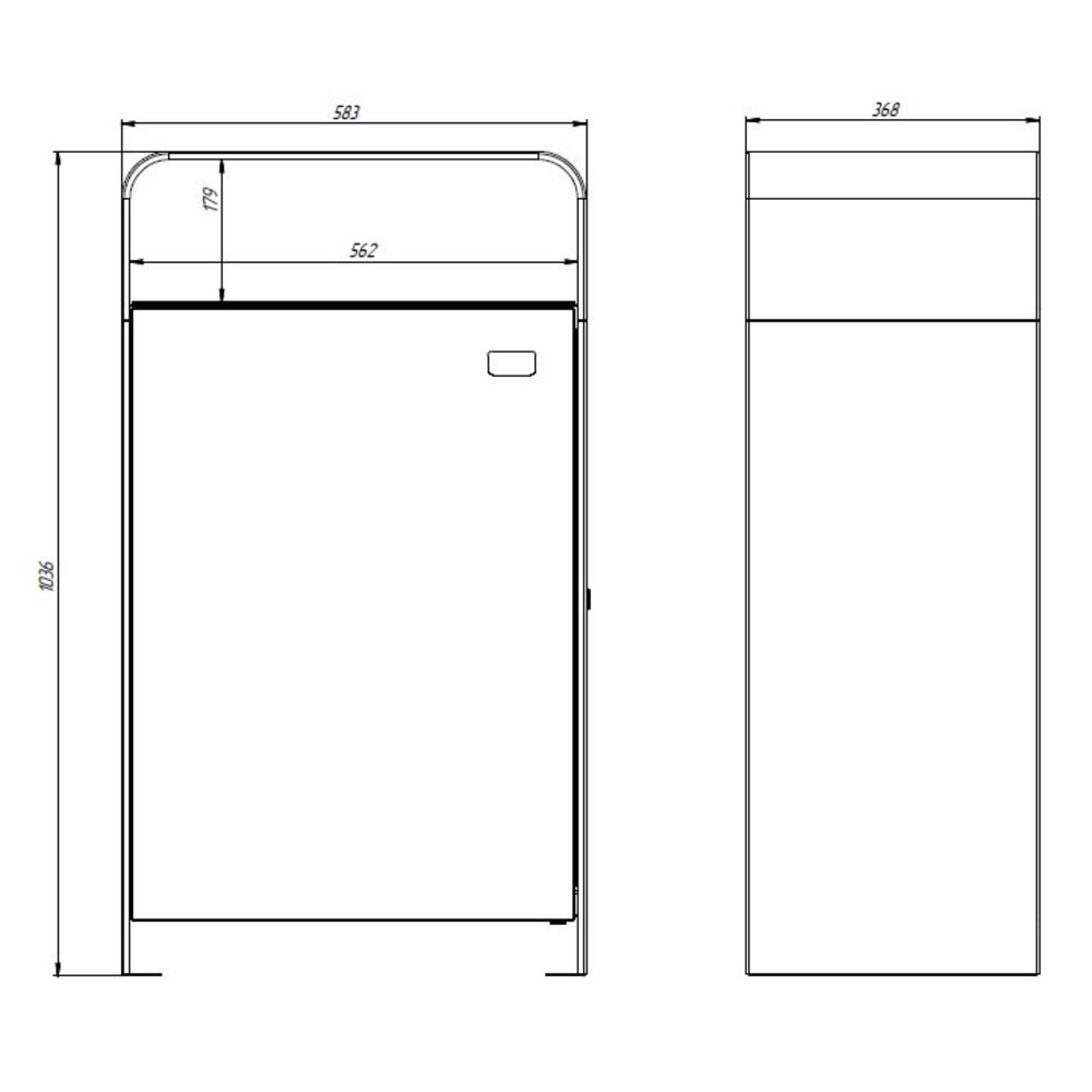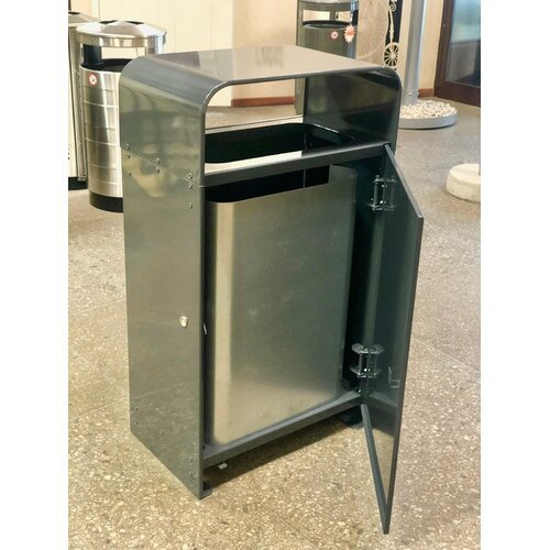 Antivandalinė, 105 litrų talpos šiukšlių dėžė, komplektuojama su metaliniu įdėklu ir trikampe spyna. Korpusas gaminamas iš 2,5 mm storio plieno lakšto, dažoma milteliniu būdu, spalvą galima rinktis iš RALL spalvyno.